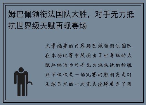 文章摘要:在当今足球界,巴黎圣日耳曼的球员基利安·姆巴佩无疑是最耀眼的明星之一。无论是在法甲赛场还是在国际赛场,他都以惊人的速度、精准的射门和灵活的场上意识,成为球队的绝对核心。本篇文章将从四个方面深入分析姆巴佩如何在关键比赛中闪耀赛场,带领巴黎圣日耳曼逆袭胜利,继续书写自己的传奇篇章。首先,我们将探讨姆巴佩如何凭借出色的个人能力打破僵局,为球队注入信心;接着,我们将分析他在比赛中的领导力表现,如...