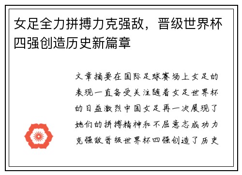 文章摘要:梅西,作为阿根廷足球的传奇人物,始终是全球足坛的焦点。在2022年世界杯中,梅西凭借着其卓越的个人能力和超凡的领导力,再一次带领阿根廷成功晋级世界杯四强,并为国家足球历史写下了崭新的一页。本文将从四个方面详细探讨梅西如何以个人才华和精神力量带领阿根廷走向世界杯四强。首先,我们将回顾梅西的历史性表现以及他的团队协作;其次,我们将分析梅西的技术优势和心理素质对球队的影响;接着,我们将从阿根廷...